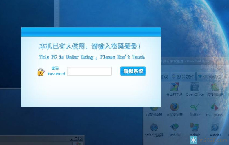 最近很多网吧需要进行某些工作,大家都懂得的,需要开机锁定,用计费软件不太方便,所以用锁屏软件比较简单一些。