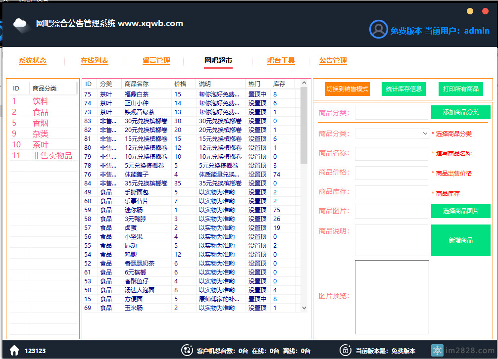 A-A+ 网吧超市点单 网吧在线购买饮料食品香烟商品点购系统 Access数据库版本 2021年03月13日 软件分享 暂无评论 阅读 783 次 网吧超市点单 网吧在线购买饮料食品香烟商品点购系统 Access数据库版本 本版是测试版,改用了ACC数据库、放弃之前的MYSQL数据,防止和其他软件冲突 软件是易语言写的,绝对无广告和非法代码,自己一直用,不放心请放弃 测试有什么问题可以在群里直接说后期还要改进和加功能。 下载地址:QQ群2118558
