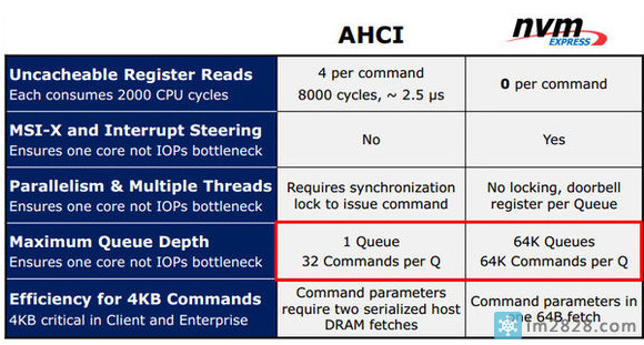 就好像IDE总要走到头,AHCI似乎也出现了瓶颈。因为AHCI当初就是为机械硬盘设计的,所以在4K\IOPS上有致命的缺陷
