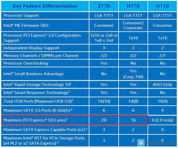 好了,上面这张图二笔的太平洋小编画错了红圈,应该是花下面的PCI-E3.0,不过幸好有下面这张表