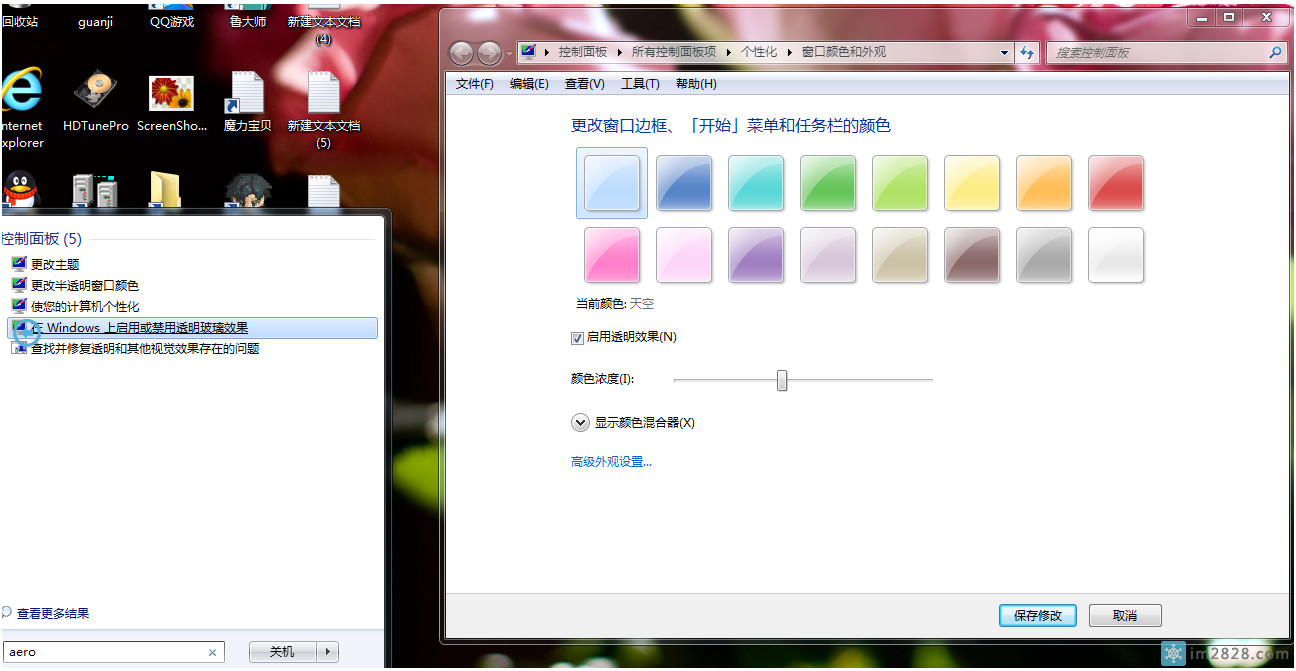 Win7窗口没有aero透明效果 没有出现“在 Windows 上启用或禁用透明玻璃效果”