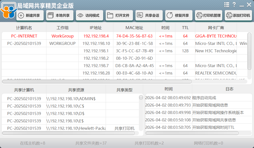 局域网共享精灵企业版 快速解决Windows之间的共享和打印机共享