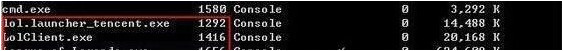 3、运行英雄联盟游戏,进入到游戏对战局中,按Alt+Tab键,切换到桌机,运行CMD,输入tasklist显示进程列表
