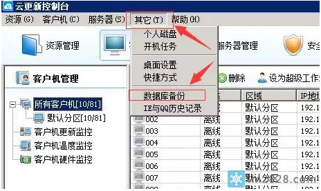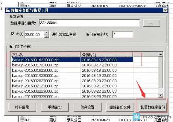 选择最近的时间节点的数据库,点击恢复数据库备份。这时候,主服务端就恢复到了正常使用中的数据库。那么此时再把主服务器接入网吧局域网,就不会发生上述的情况了。