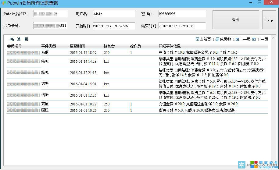 Pubwin会员所有加钱减钱上机消费记录查询 V1.1 绿色版 深蓝软件