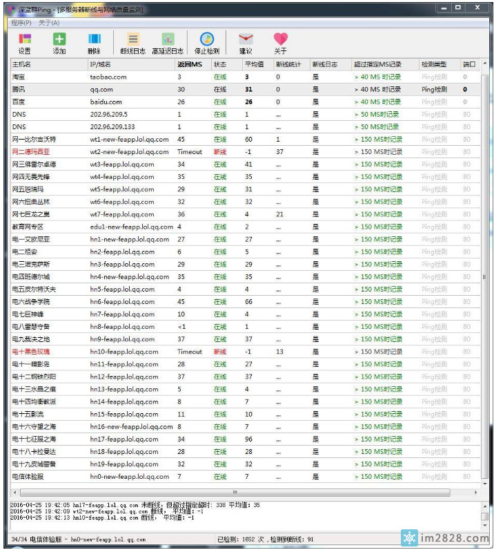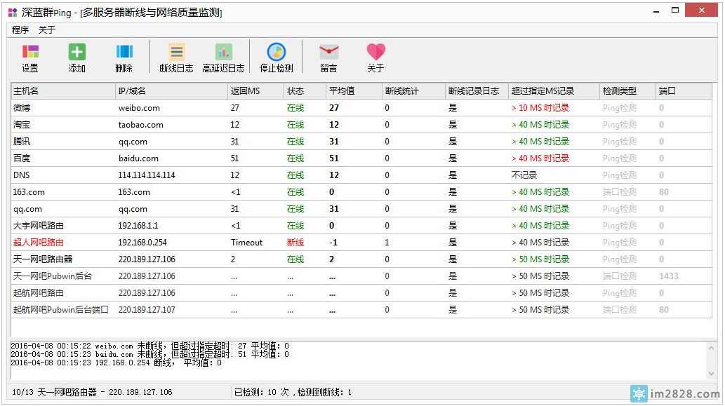 深蓝群Ping V3.2.1.44 多线程 多服务器PING 端口超时检测 记录日志 绿色版