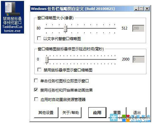 一直非常讨厌win7的鼠标停在任务栏显示一个预览小窗口,经常误事儿不方便。改注册表想了很多办法都不能去掉或者去掉了也禁用了其它功能。