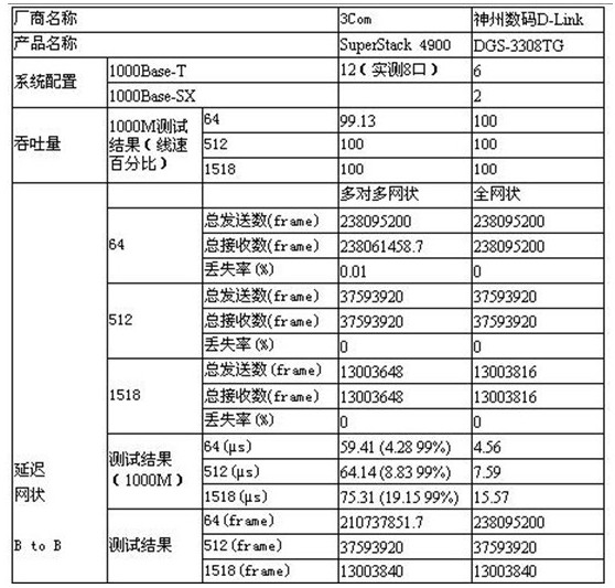 这个测试表明,在64字节这样的极限条件下,2个交换机的通过率都超过99%以上,请注意测试单位是64字节,而不是64kb,普通硬盘如果用512字节来测试的话,连续数据也只有3-4MB/S,随机数据就只有几十KB/S了.交换机上单个包的延迟仅为4微秒,比硬盘的15毫秒的寻道时间少了3000倍.尽管网吧里的状况不可能象实验室中的测试条件那么好,但是实际上,网络上真正的延迟还是远比硬盘的延迟要低的多的多!