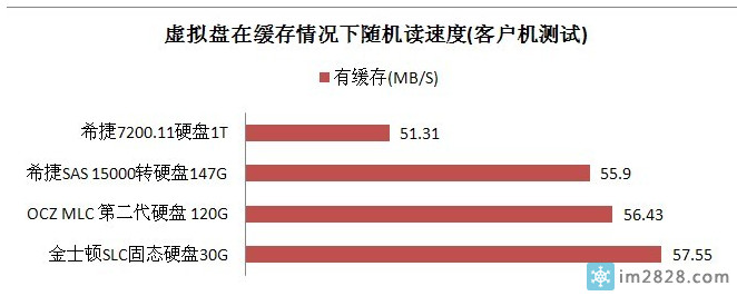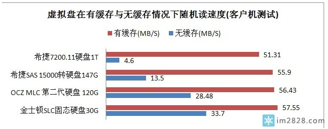 (图10:虚拟盘在有缓存和无缓存情况下随机读速度(客户机测试))