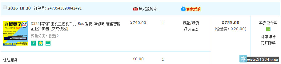 做事得有严密的备用计划,如果把流控大师A380贸然刷成碧海威,再出问题怎么办?生意正不好的时候更麻烦,于是我到淘宝买了一个D525工控机,选了套餐2.