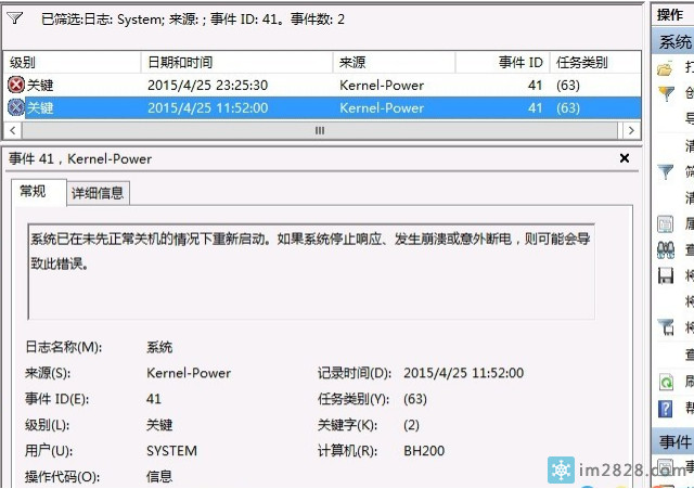 再次去网吧现场的时候发现,虽然依然是全网吧重启,但此次服务器上有了日志,如图,有了两次非法关机。也就是上,上次的问题我们是解决了,但这次又出现了新的问题。