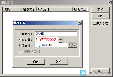磁盘容量:1 改为你所需要的容量大小(例如改为200);然后点击→确定。
