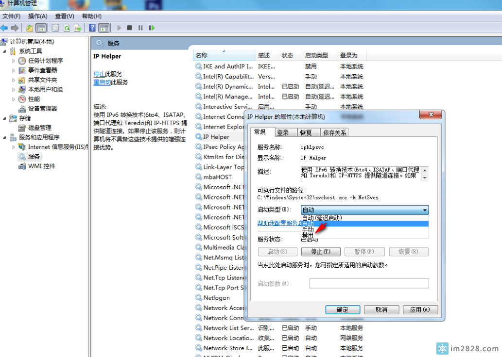 A-A+ 网吧英雄联盟提示“已从PVP.net断开,可能是网络通讯出现问题”的解决方法 2020年11月22日 问题教程 暂无评论 阅读 100 次 英雄联盟"已从PVP.net断开"解决办法分享下。下次碰到时有用 经常发现有的网吧玩LOL隔一会就显示,”已从PVP.net端口,可能是网络通讯出现问题“本来以为是自己网络有问题,可是打开网页又能够上网,最后查阅资料才发现是“IP Helper”服务在作怪。方法/步骤打开开始菜单“运行”对话框,输入命令【services.msc】点击确定或者在桌面“计算机”上直接点击右键,点管理,找到服务选项: 把这个服务从 自动 改为 禁用 即可。