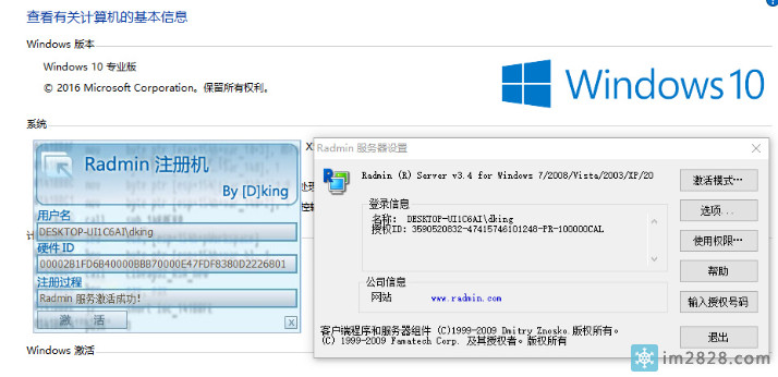 Radmin3.4注册机,完美支持Win7 Win2008 2012R2 WIN10 SERVER2016