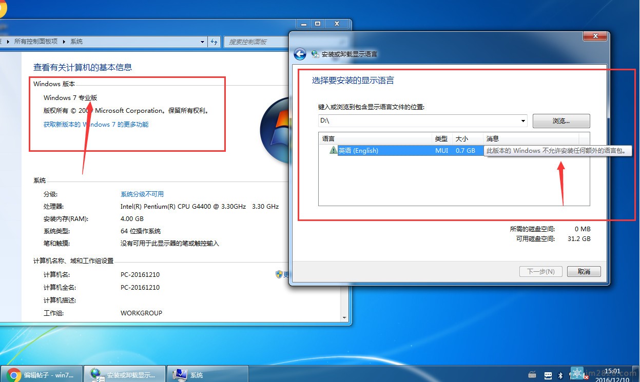 Win7专业版安装英文语言包操作教程(默认微软不让你安装的,必须旗舰版)