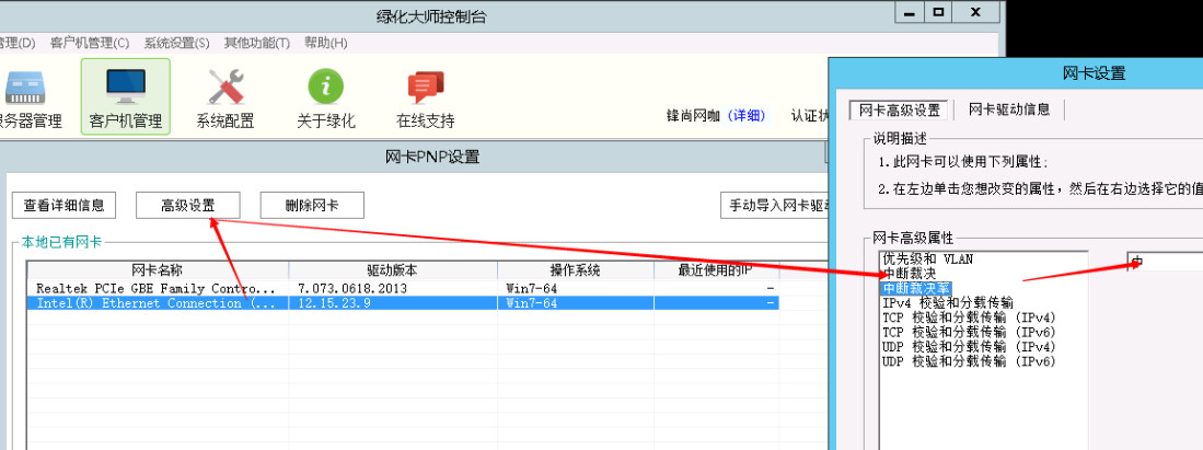 等待导入完成以后,下面是比较重要的一步,设置网卡高级中的裁决中断率为中。