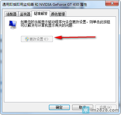 其实要解决 疑难解答这里的【更改设置】按扭不可用这个问题不是很难,把本文最下面提供的deskadp.dll,deskmon.dll,deskperf.dll替换掉系统里的windows/system32文件夹下的三个相应的文件,可以达到打开调节硬件加速选项的功能。也就是不再“灰色了”