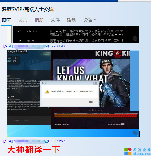 A-A+ H1Z1 (King of the Kill) 报错解决 Needs windows 7 server pack 1 platform update 2020年11月23日 问题教程 暂无评论 阅读 118 次 今天有群友遇到H1Z1报错的问题,如下下图提示:Needs windows 7 server pack 1 platform update 感谢深蓝软件SVIP群友 奥雷良诺 与 辉一样的机 提供两个解决方案 解决办法: 1,下载 Windows6.1-KB2670838-x64.msu 补丁安装。 2,或者安装IE11。 3,感谢当海不蓝补充:安装IE10就可以解决。
