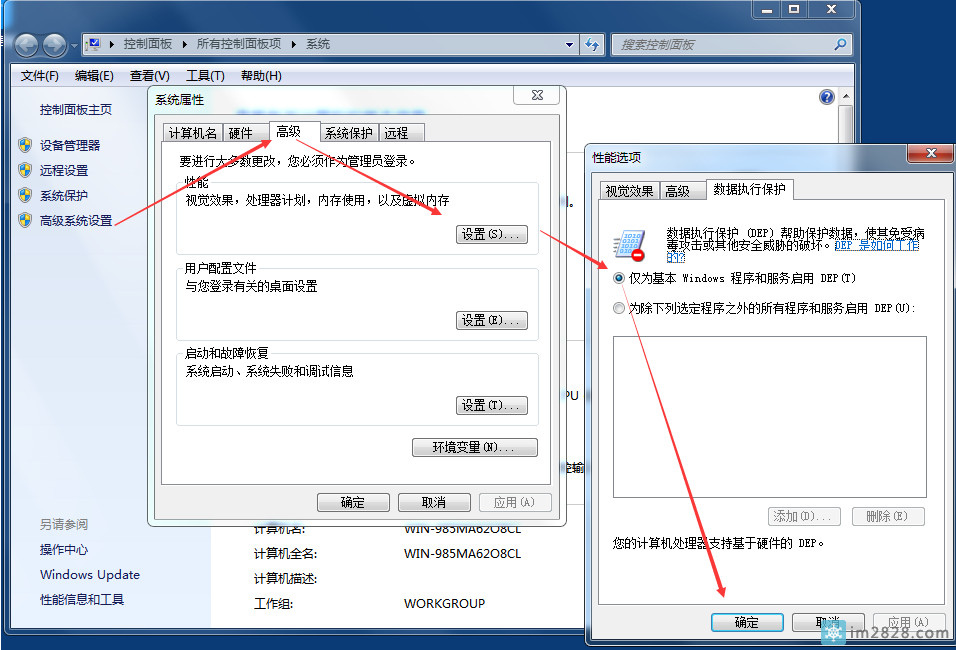 如果你关闭了DEP,忘记了怎么开启看下面这段百度上的资料: