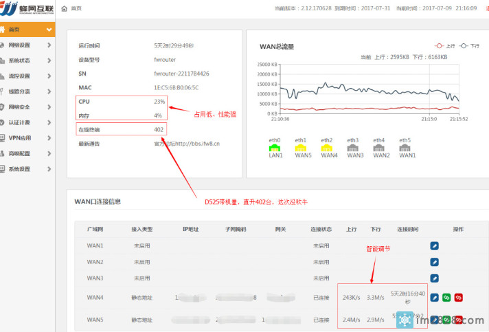 蜂网流控400台同时在线图+附赠一个网络排查好工具给大家 下载