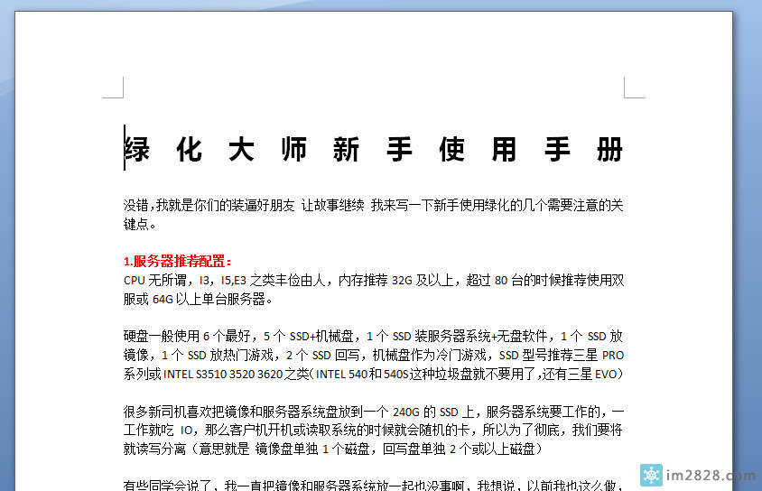 里面包含了服务器配置要求,服务器系统选择,缓存设置,下载和同步设置以及客户机的关键点设置说明。
