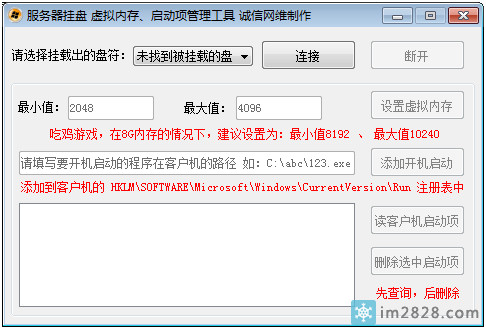 【诚信网维】网吧无盘服务器挂盘修改客户机的启动项及虚拟内存工具