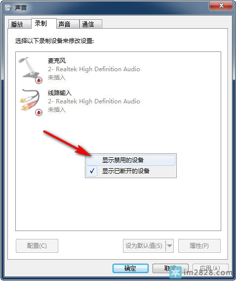 然后在空白处点击右键 显示已禁用的设备