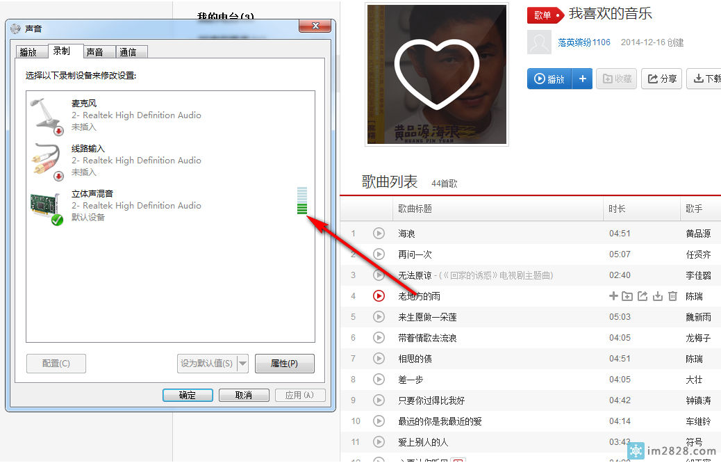 然后播放音乐就可以看到混音设备有音量了,进游戏嗨吧