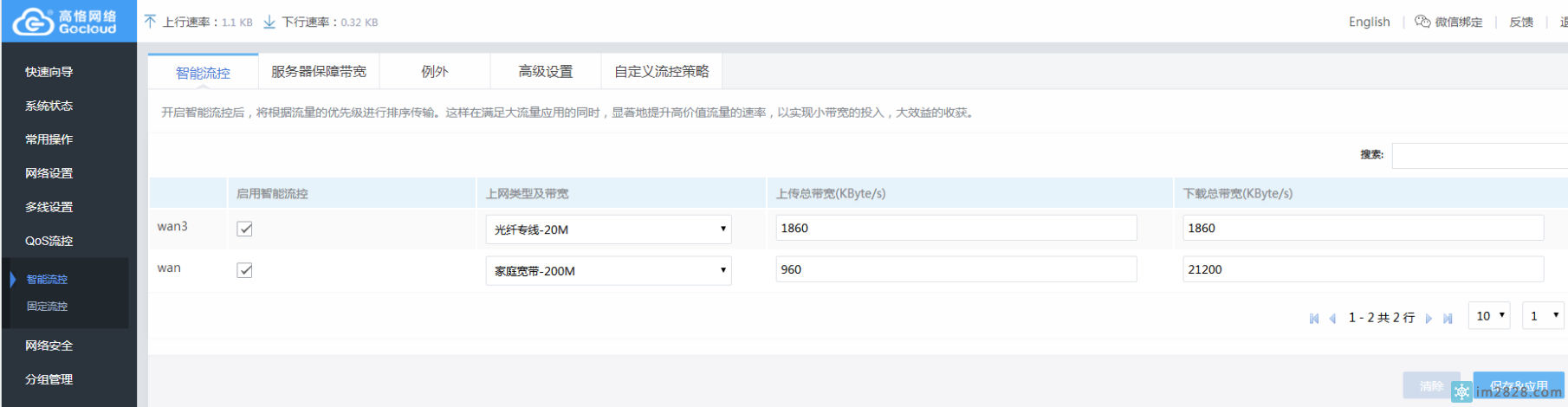 重点 是把 广域网1 设置成 路由模式 ,外网带宽不做任何限制
