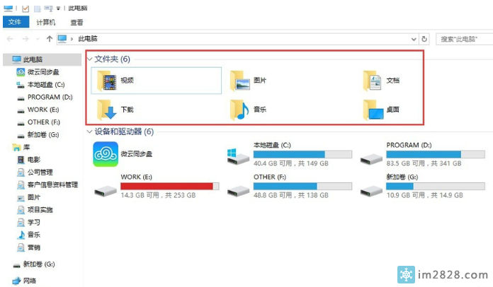 有些人和我一样强迫症忍不了WIN10的此电脑里的6个文件夹,如上图,所以要想法要干掉它。