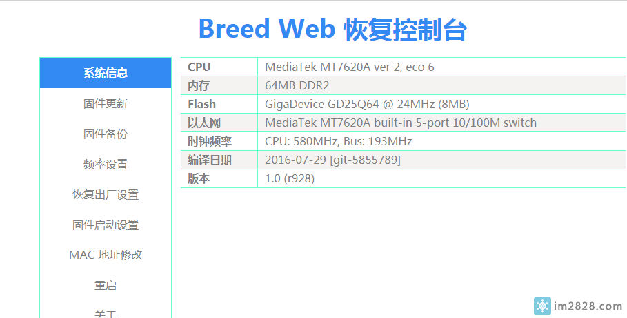 我已经刷入Breed了,所以直接刷固件就行了,如果你没刷BREED,建议去恩山论坛查看刷入BREED的方法