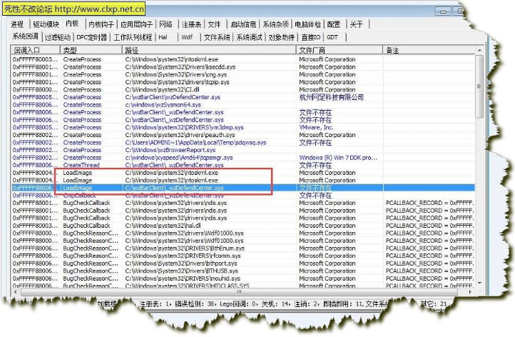 在网吧客户机中,我们有时会安装很多其他软件,比如一些拦截恶意广告病毒的安全软件,无盘软件、计费软件自带的驱动也会注册LoadImage回调,很容易就占满了这8个LoadImage回调的位置。这样在启动游戏的时候,游戏的驱动就会因为没有位置而无法加载,从而出现了1450报错。