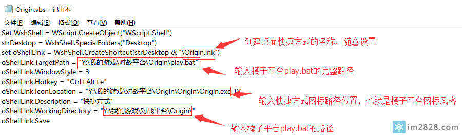 oShellLink.TargetPath = "Y:\我的游戏\对战平台\Origin\play.bat"