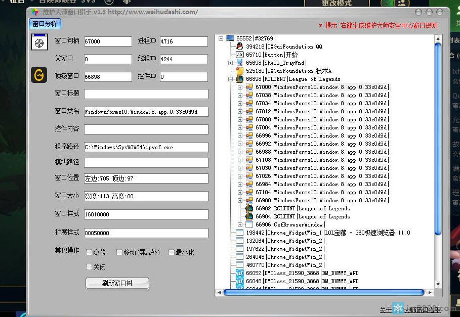 我们记住进程ID是4716,进程路径是“C:\Windows\SysWOW64\ipvcf.exe”,说明图一中的几个LOL上的广告按钮图标就是属于这个进程的。