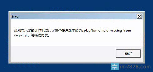 目前测试正常,然后反复测试了几次以后,游戏竟然进不去了,出现了近期有太多计算机使用了这个账户版本的DisplayName field missing from registry”请稍候再试 这个提示