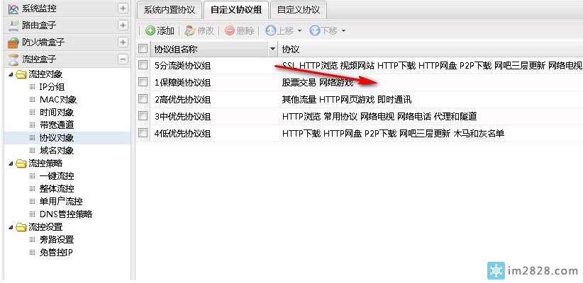 然后再把SSL协议从分流协议组改到保障类协议组(分流协议组只走电信AD,保障类分流协议组走电信或联通光纤,自动均衡)