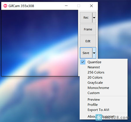 4,Save下拉菜单有对保存的GIF文件质量更改,我不建议改,好些质量都无法看比如 256colors ,256位色。录制过程可调整窗口大小/位置,可以暂停/继续,录制范围内无变化则不增加新帧而只增加延时,有效较小文件尺寸,可手动录制单帧。编辑状态可查看每一帧,下可以删除帧、增加当前帧延时。