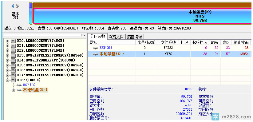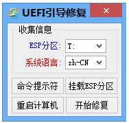 然后使用UEFI引导修复工具 ESP分区选择M: 点击开始修复,选择K:里的Windows 文件夹。修复成功后就完成了。此工具各个WinPE系统均有,网上也可下载。