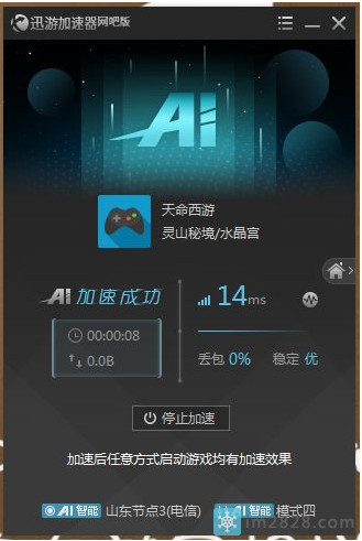 反正就1个人,不行就用加速器玩算了,果断开启迅游加速器测试:(UU加速器没搜到这个游戏,应该是不支持)